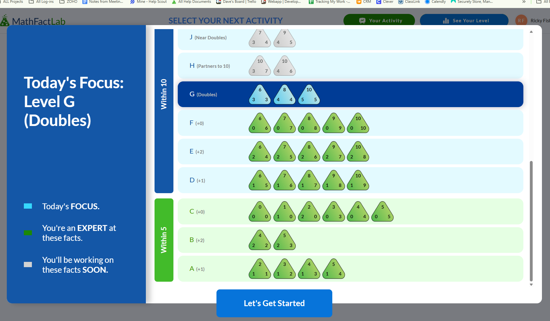 After your child clicks “Let’s Get Started,” they will be taken to their dashboard. Here, your child will work through a series of activities that teach different strategies. Each activity includes visual models to help your child better understand the math facts they are learning