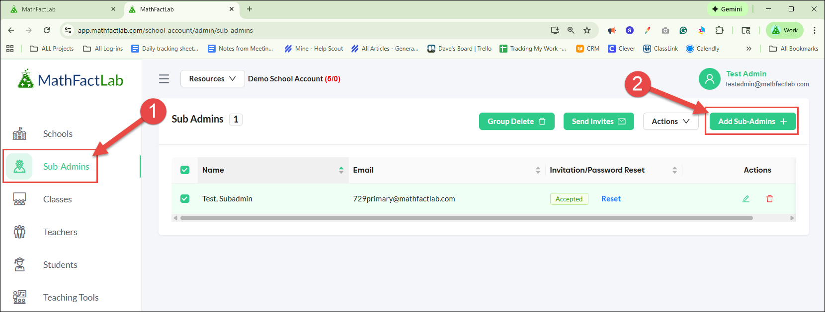 - This article is for super-administrators who want to manually add a sub-administrator to their account. Only super-admins can add sub-administrators; sub-admins and teachers cannot.