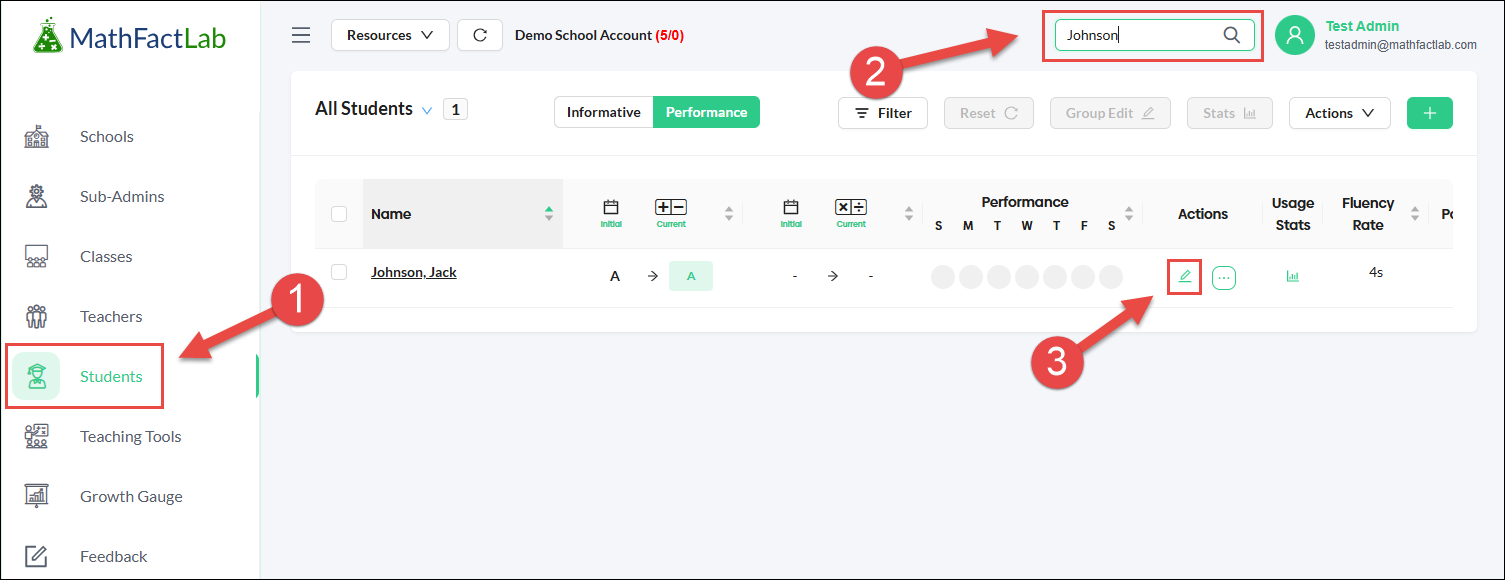 - Click the green pencil edit icon in the student's row. This will open the Edit Student pop-up.