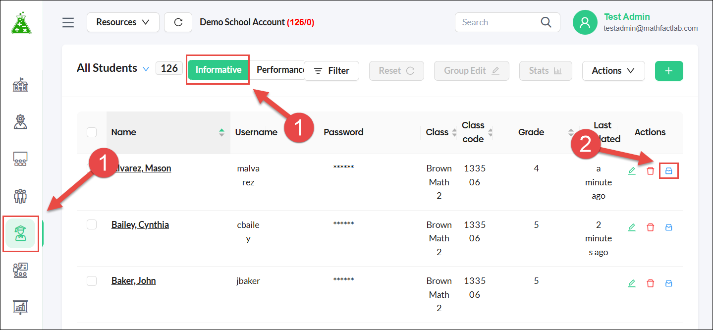 - Begin on the Students tab (either the Informative view or the Performance view).