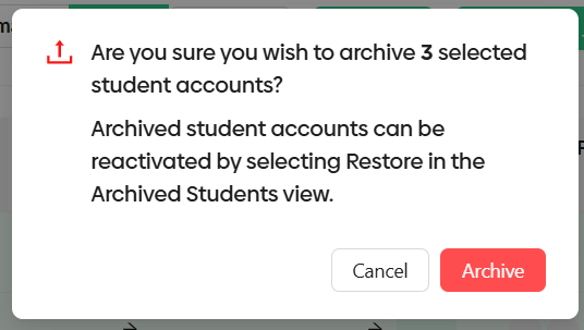 The archive option is designed as a short-term solution for students who are not currently active. Instead of deleting a student (which permanently removes all associated data), archiving simply takes them off the active roster while keeping their data intact.