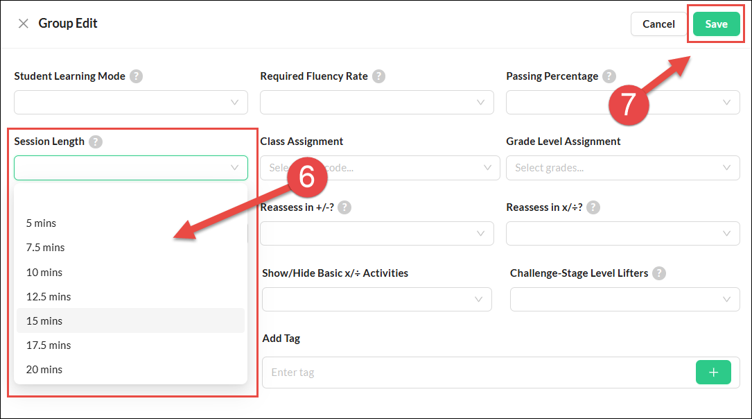 - In the Group Edit Menu, select the desired duration for work sessions for these students.