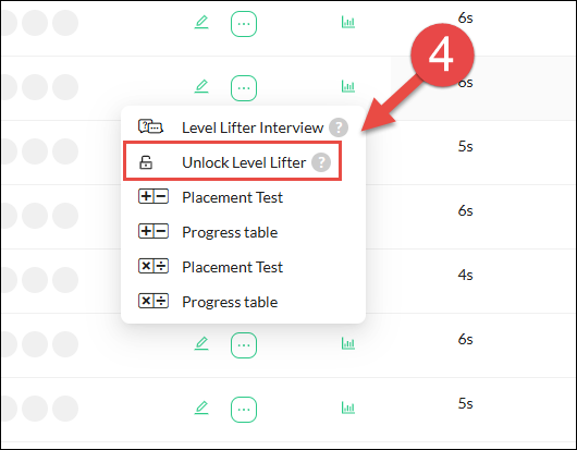 If you feel a student is ready to take a Level Lifter, you can unlock the Level Lifter for the student by doing the following: