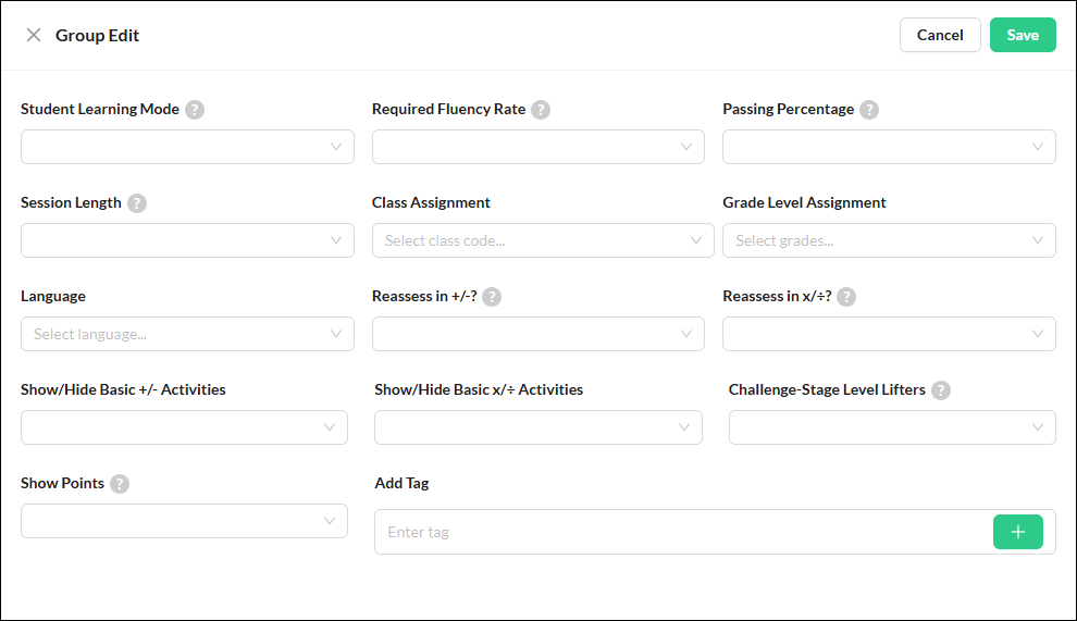 The Group Edit function allows you to adjust any of the following settings of the selected students:
