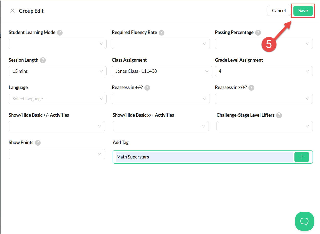 Editing Student Settings for a Group